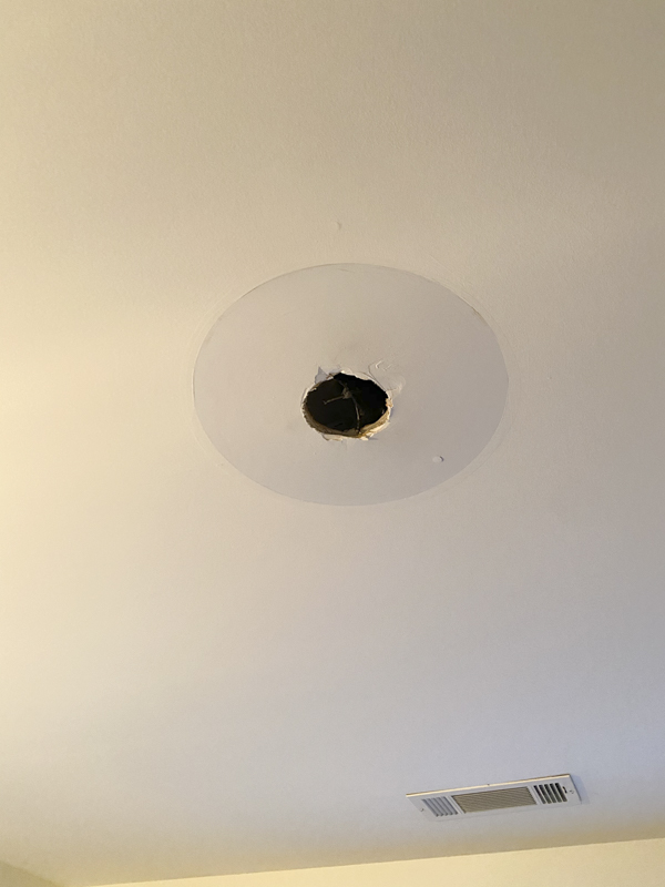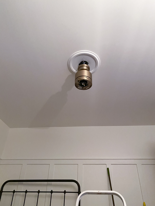 It can only look worse before it gets better! DIY has forced us to learn all sorts of skills. Add this to the list! Since I don’t know the color of the ceiling, I bought a simple ceiling medallion from Home Depot. This allows you to cover up that weird ring which is difficult to remove even with paint. Plus, it adds a nice inexpensive detail to any light or fan.