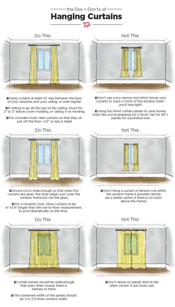 Make sure the inside of the drapes covers the outside of your window trim. You don’t want to see any of the window trims on the sides so have the drapes frame the windows beautifully.