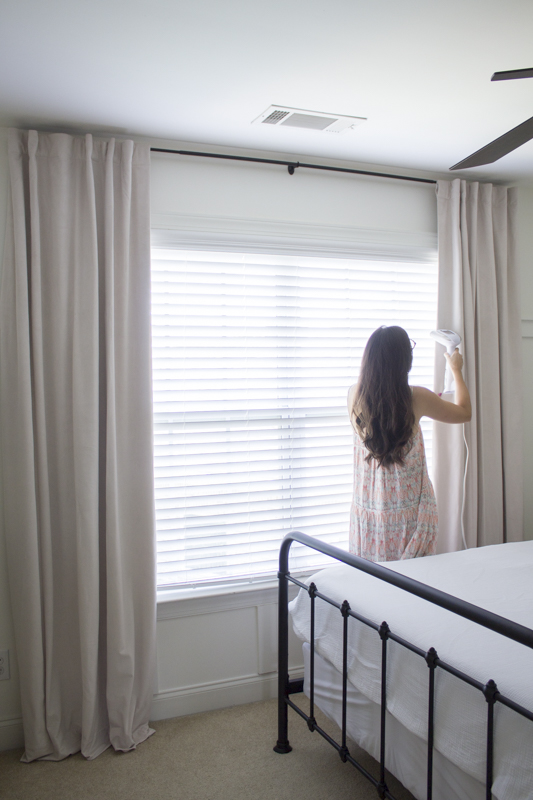 Another tip with drapes is to make sure you iron out any wrinkles! This Conair steamer is a dream to work with because no ironing is needed! I’ve used a couple of different steamers and this is my favorite one. It’s so much easier to use after the drapes are already hung. Velvet curtains are supposed to be dry cleaned but did you know that they can also be steamed?