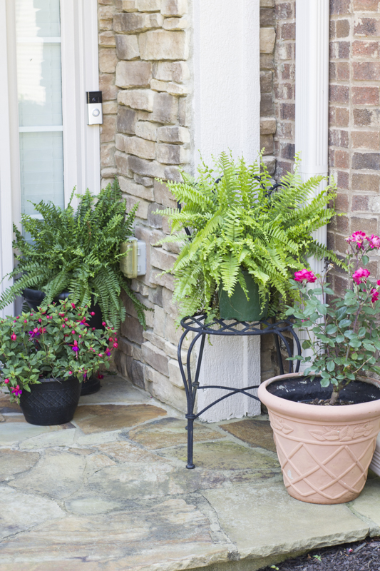 Sometimes, we are so focused on creating beauty on the inside of our homes that we neglect the outside. The outside needs love too and it doesn’t have to be expensive. Ferns typically cost around $10 and I love their low maintenance. My ferns last all summer long and well into Autumn.