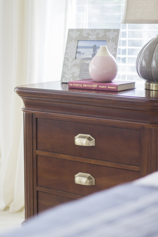 Since we were working with existing furniture, I recommended switching out the hardware for these pulls. I love the geometric shape and this allows Benny and Barry to use their furniture for a bit longer. Paint is another option to update furniture but I actually loved the darker wood and thought it was a great contrast to the bed and the rest of the room.