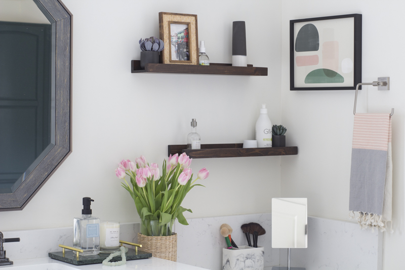 It has been so nice having our bathroom back after all the demo. Getting ready in here every morning has been so enjoyable. After sending the kids off to school, I bring up my hot lemon water and get ready in here all alone. I usually listen to music or a podcast and I take my time on days I don’t have an early appointment. It’s truly a gift to savor small moments and it’s a great way to start off the day with a heart of gratitude. Sorry to sound so incredibly cheesy but I am just so thankful that we get to enjoy the fruits of our hard labor.