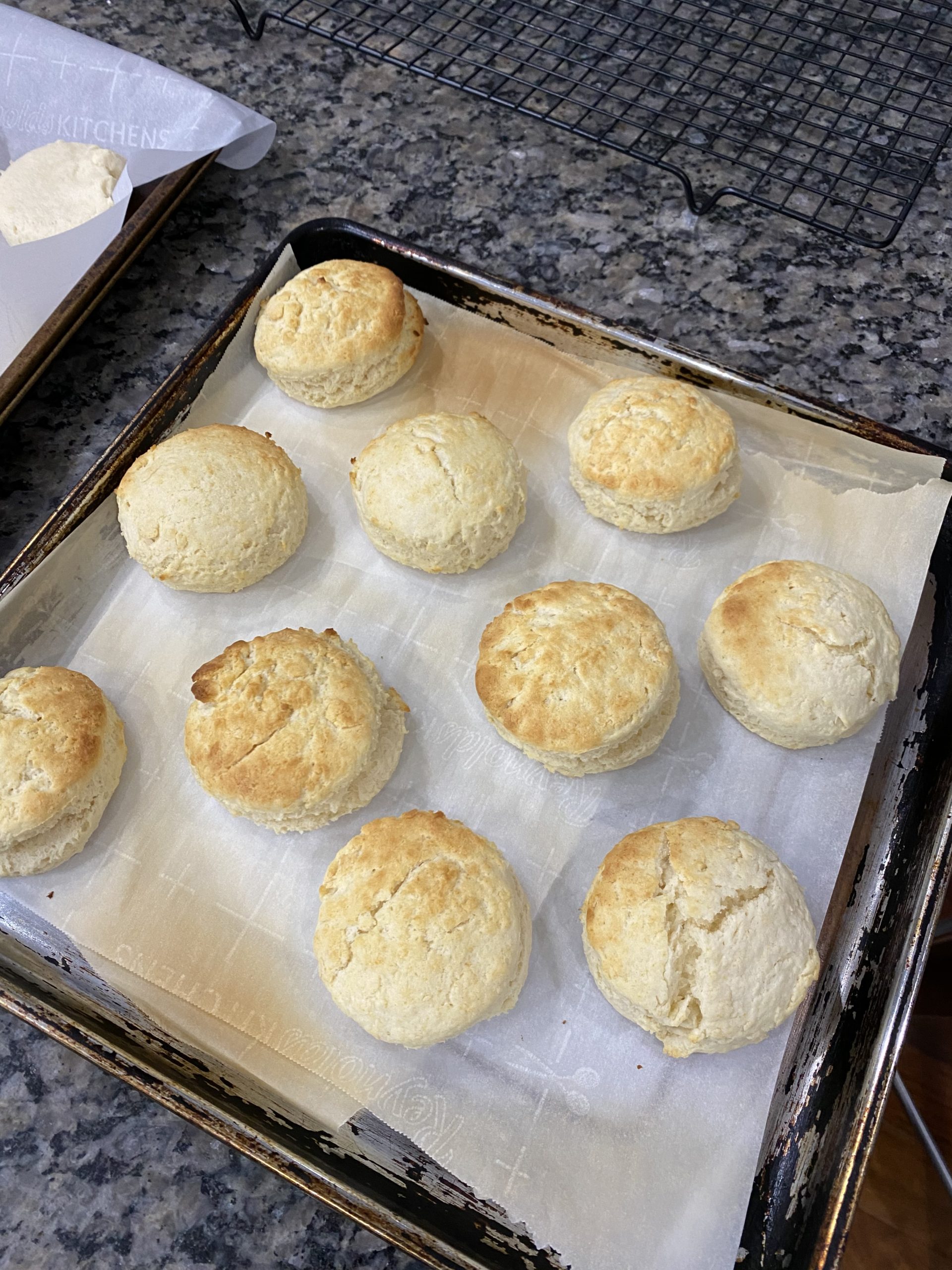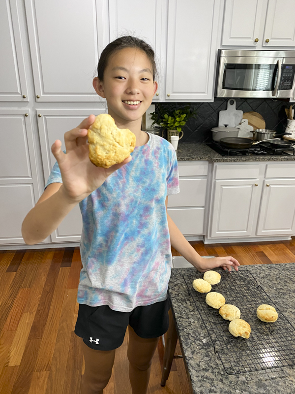 Bake for about 10 minutes or until the tops are golden brown. Since the biscuits don’t have salt, I highly encourage you to add your favorite jelly. That makes all the difference!