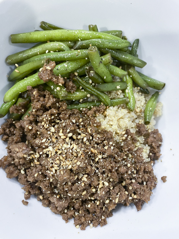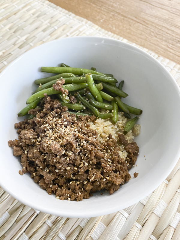 You can serve this 4 ingredient Mongolian ground beef over rice or quinoa. I also recommend adding your favorite veggie as a side to this. Cook it together or separately. It’s up to you! I made this with ground beef because we always have some in the freezer.