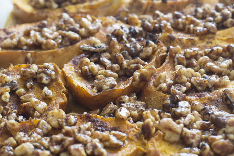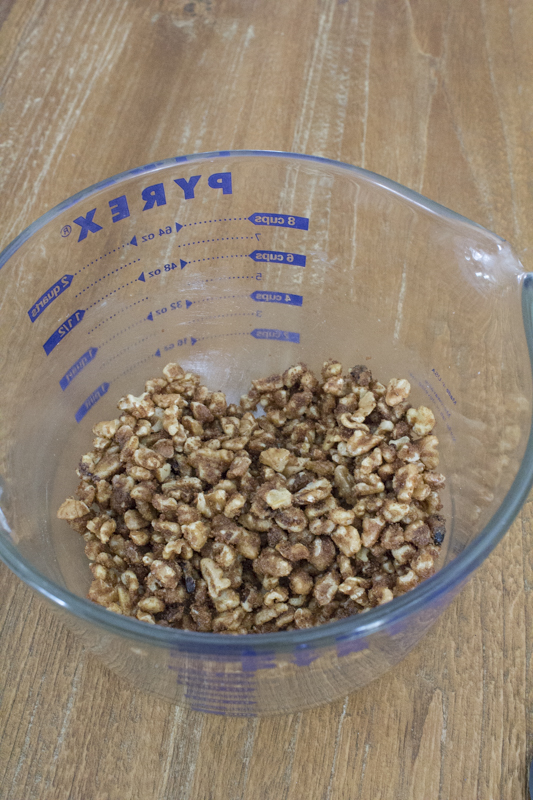 The caramelized walnuts are delicious and you can also substitute them for pecans.
