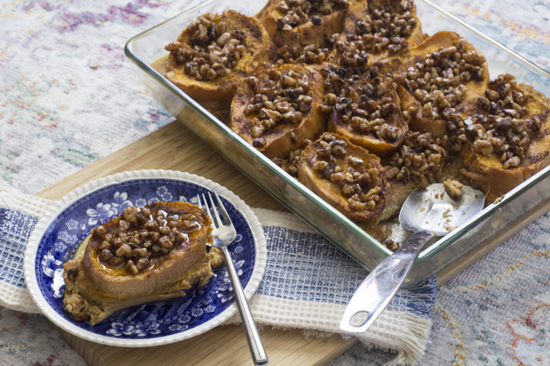 Baked Pumpkin French Toast with Caramelized Walnuts