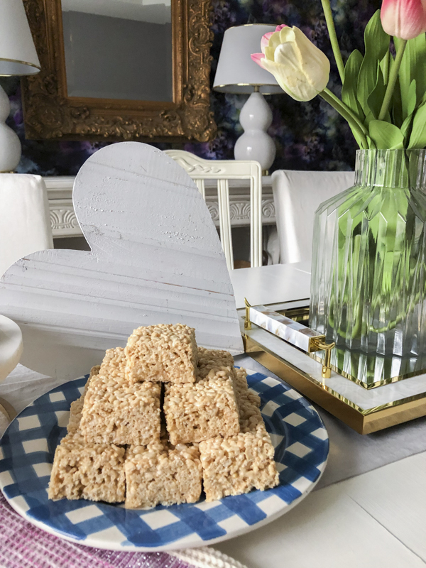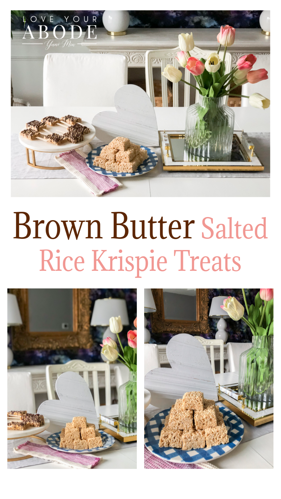 This past November when I was visiting my sister to give her home a Christmas makeover, she made the most delicious brown butter salted rice krispie treats. I can not tell you how many I ate but let’s just it was A LOT. Okay, I ate more than half the pan. I love rice krispie treats but these were incredible. She’s terrible at giving directions because it’s always a little bit of this and a little bit of that so after much trial and error, I finally came up with the best balance of rice krispies and marshmallows. Here’s how to make your own at home so you can enjoy these amazing brown butter salted rice krispie treats.