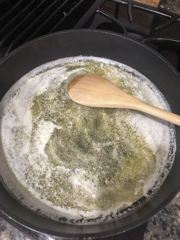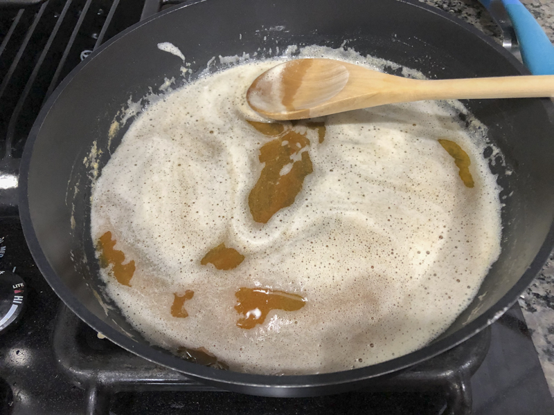 Step 2: Add 1/4 tsp of sea salt and with a wooden spoon, move around the butter until it browns.