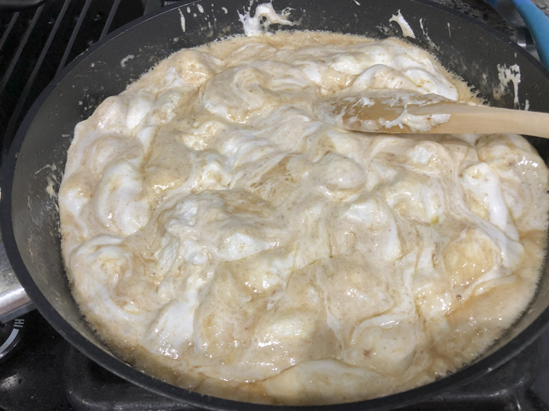 Step 3: Once the butter browns, turn your heat down and add the bag of marshmallows.