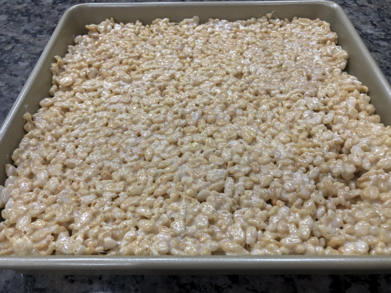 Step 6: Spray your 8X8 pan and move the mixture into the pan. Wait patiently for it to harden.