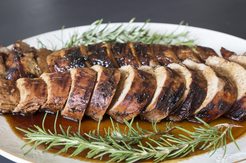 For the main dish, we’re grilling balsamic glazed pork tenderloin. This recipe does not disappoint! The meat stays tender and it has a wonderful flavor from the balsamic glaze and maple syrup.
