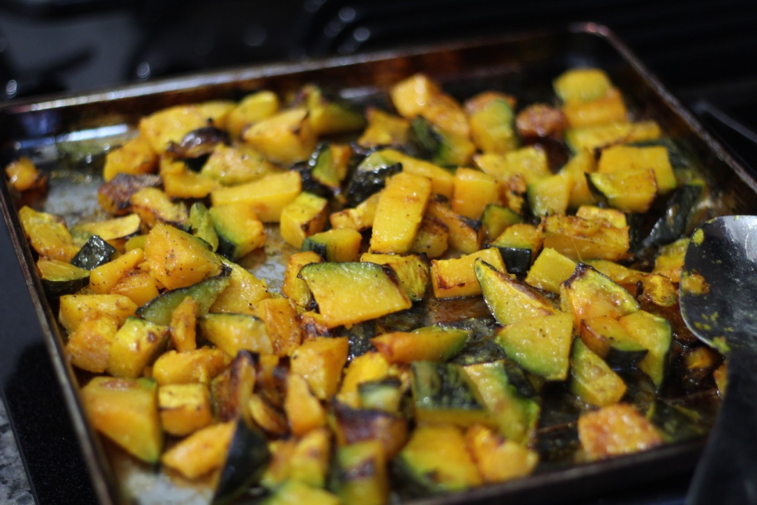 You can never go wrong with roasting vegetables like this kabocha squash or cauliflower. It’s super healthy too so you can eat that slice of cake AND pie for dessert.