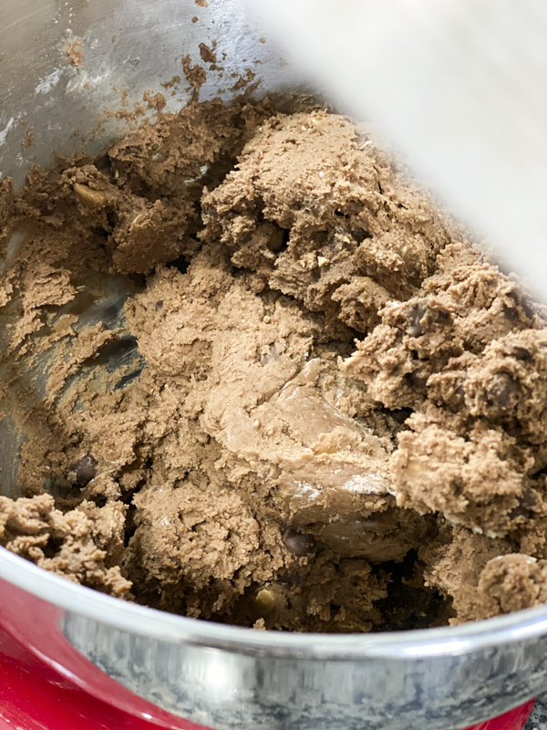- Stir in your peanut butter and chocolate chips. Watch the video below to get a good idea on how to mix everything.