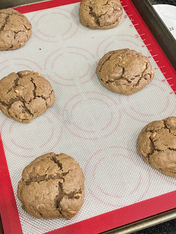 - Scoop out dough and create them into large balls and place them on a cookie sheet.