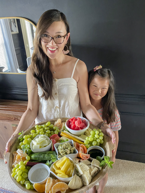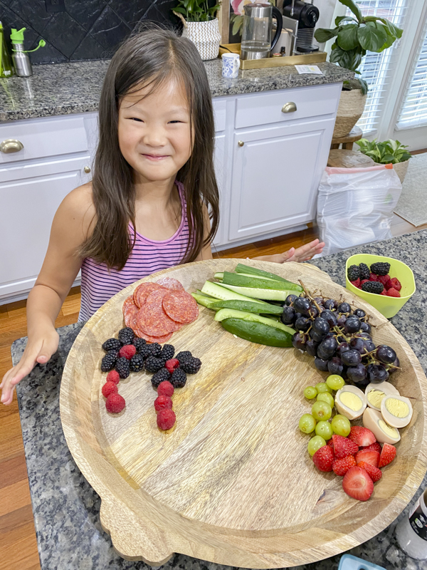 Emmy loves helping with our goodness grazes board and is the first to help with all the prep work. Getting kids involved with meals will make them invested and more interested in trying different things. She gets super excited and is getting so good with the presentation. Why do veggies taste better when they look pretty?