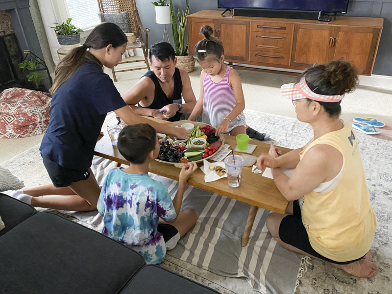 One of our favorite activities is making our huge charcuterie board and eating it while watching a movie.
