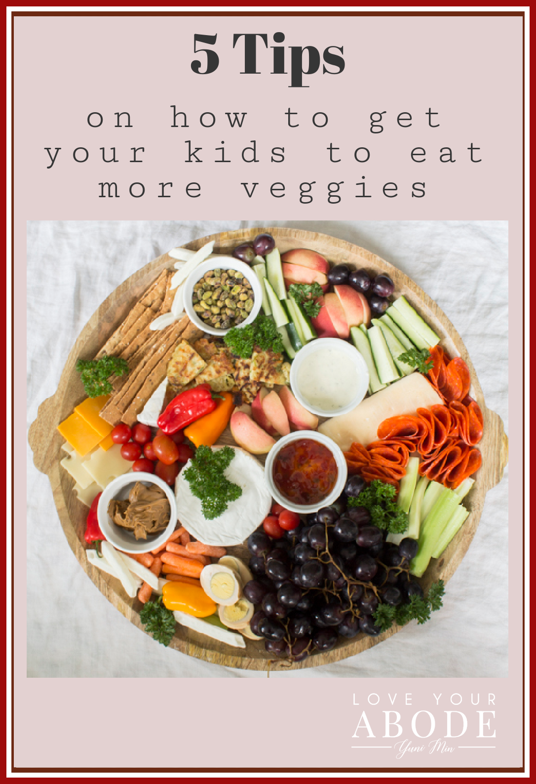 That’s exactly how we feel when we dig into our grazing board. During the quarantine, we really got into creating epic veggie, meat, cheese, and fruit platters. They make the perfect dinner because you don’t have to deal with washing a bunch of dishes and we love the variety and combination of all the flavors. I named these platters, “Goodness Grazes” and wanted to share some of our favorite ingredients along with tips on how to get your kids to eat more vegetables.