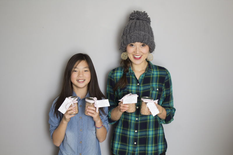 In a large bowl, place all the ingredients and mix it together. Fill each jar up and tie with a ribbon. I made printables for mine and attached them to the jar. If you want the printable, just email me at loveyourabode@gmail.com and I’ll be happy to share it. It’s nothing fancy. I punched a hole and added it to the jar with some ribbon.