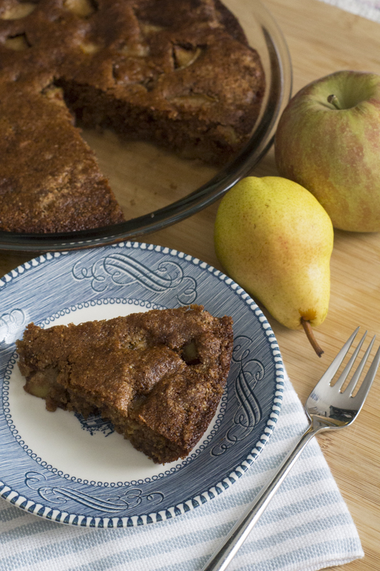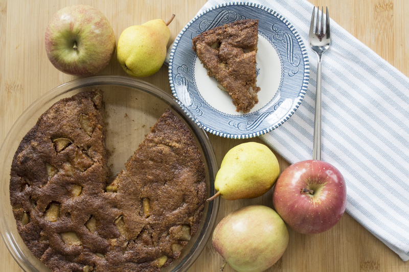 Last week, my kind MIL came over with a large bag of Fuji apples from the orchard. Even though we never made it to the farm, we have been been fortunate with friends and family sharing delicious apples with us. I got inspired to create a paleo apple pear cake and oh my goodness it’s absolutely delicious!
