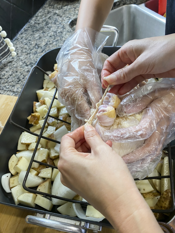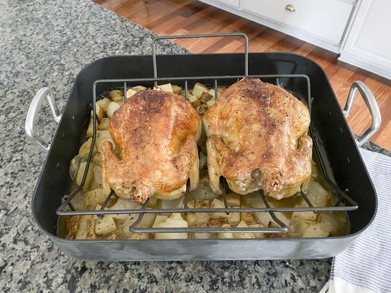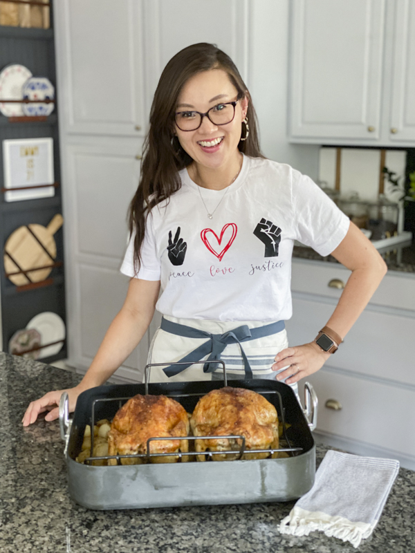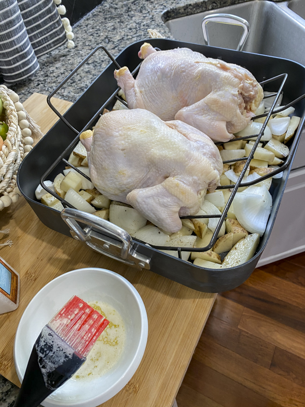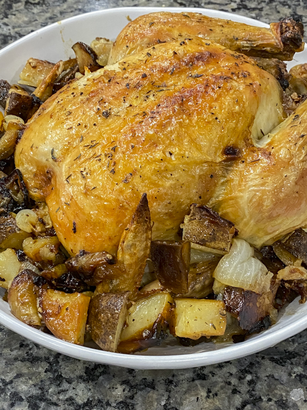 Since we have been home so much, we have tried to take advantage of the time and teach our kids different things. I took JJ to stage homes and he learned how to create a beautiful tablescape. Emmy and I have been propagating different plants and Jules and I decided to learn how to roast a whole chicken. This recipe is adapted from Ina Garten’s roasted chicken and highly recommended by my little brother, John who has become somewhat of a chef himself. Here’s my take on the perfect roast chicken.