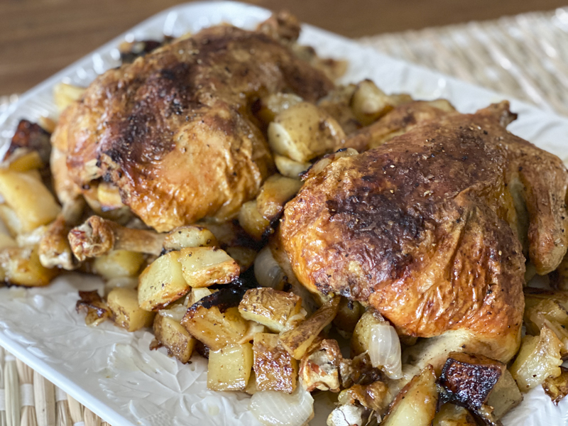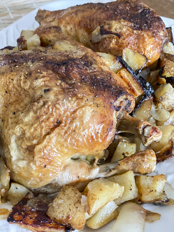 The best part is the caramelized onions and potatoes. The juices from the chicken create the most delicious flavor. Feel free to add carrots or modify the vegetables to your liking.