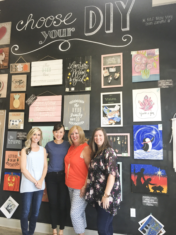 Last weekend, I went to a blogger meet up at a studio called Pinspiration. My friend, Erin brought some of us together to catch up and craft. It’s such a neat little studio with food, drinks and even live music on certain evenings. They hold date nights, parents night out and ladies’ craft get togethers. Here’s a groupon deal too! We had so much fun creating some neat DIY projects and hanging out with each other.